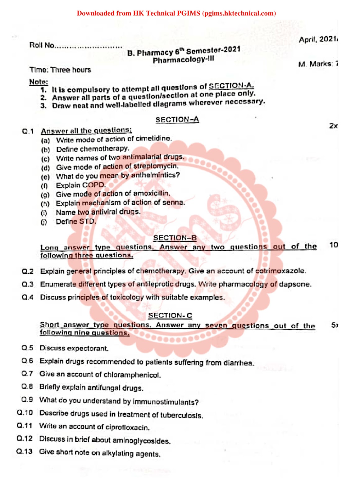You can download BPharmacy Notes & Previous Year's Question Paper from here. All semester-wise Notes & Previous Year Question Papers are available on HK Technical. You can download all question papers & notes for BPharmacy all semester/years for free.You can view All Question Papers From Here.