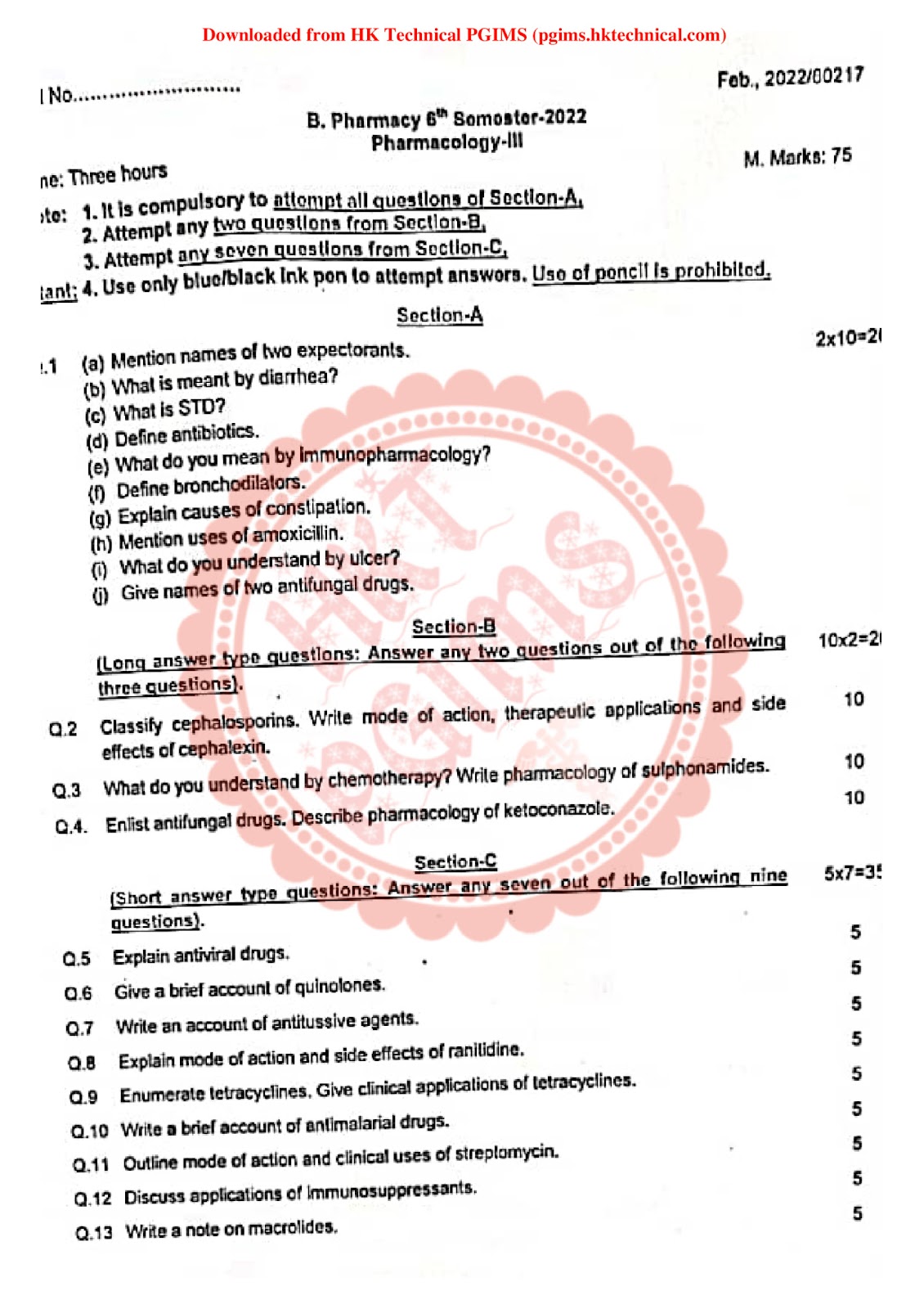 You can download BPharmacy Notes & Previous Year's Question Paper from here. All semester-wise Notes & Previous Year Question Papers are available on HK Technical. You can download all question papers & notes for BPharmacy all semester/years for free.You can view All Question Papers From Here.