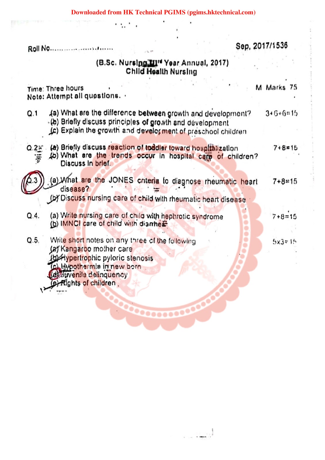 Child Health Nursing Download Question Paper PDF BSc Nursing 3rd Year 2017