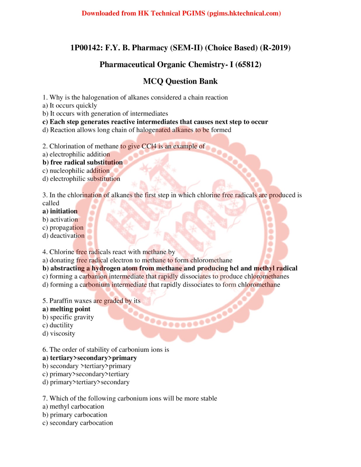 POC I MCQ Question Bank Final Download Question Paper PDF BPharmacy 2nd Semester 2022