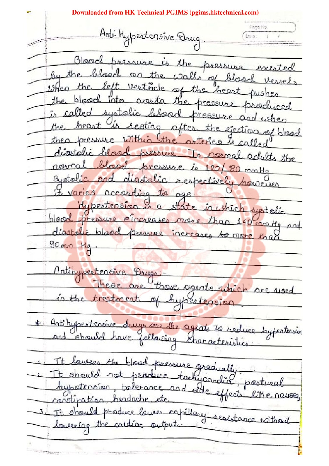 Antihypertensive agent Download Notes PDF BPharmacy 5th Semester 2022