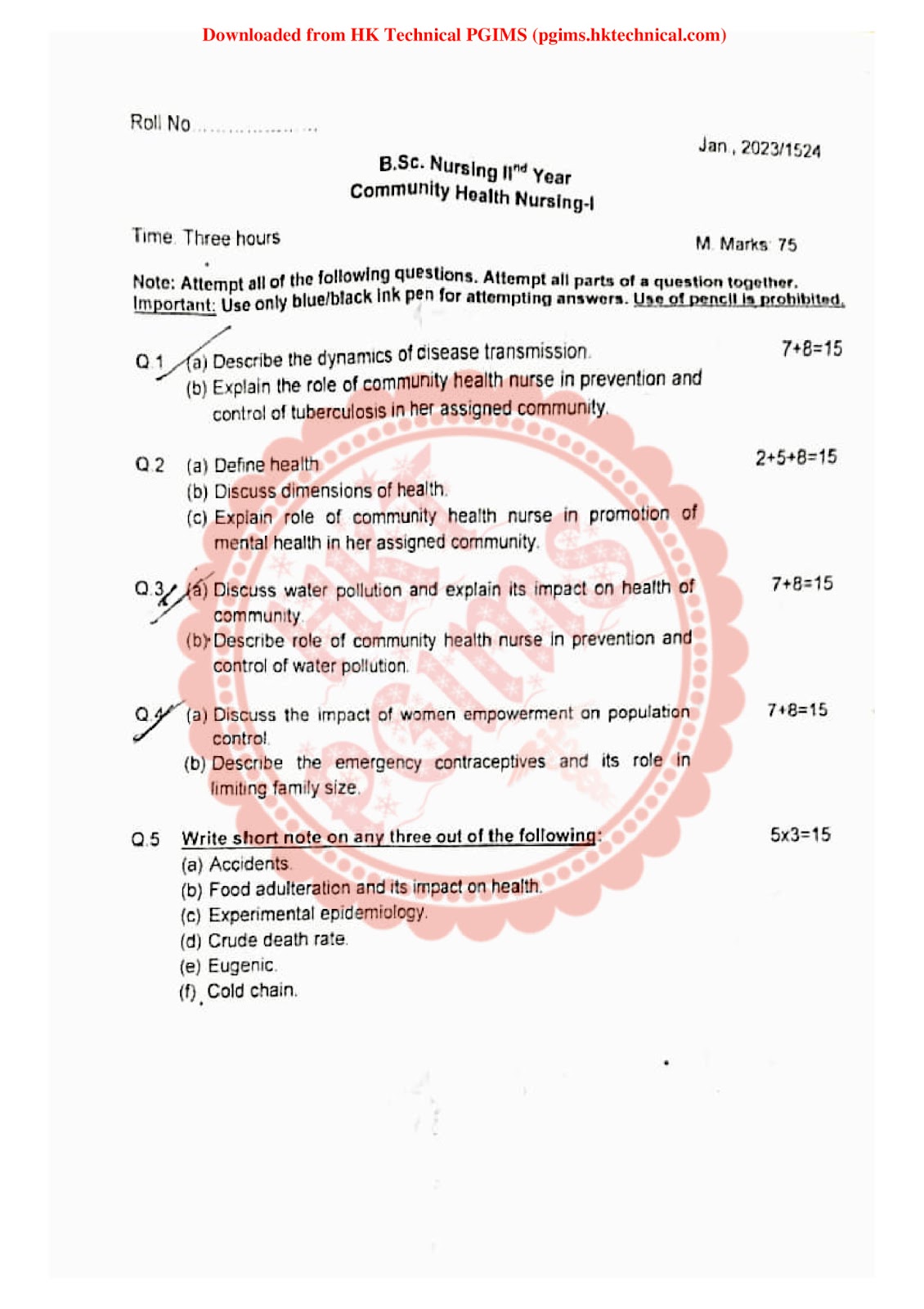 | BSc Nursing BSc Nursing 2nd Year Previous Year's Question Papers Community Health Nursing | |
