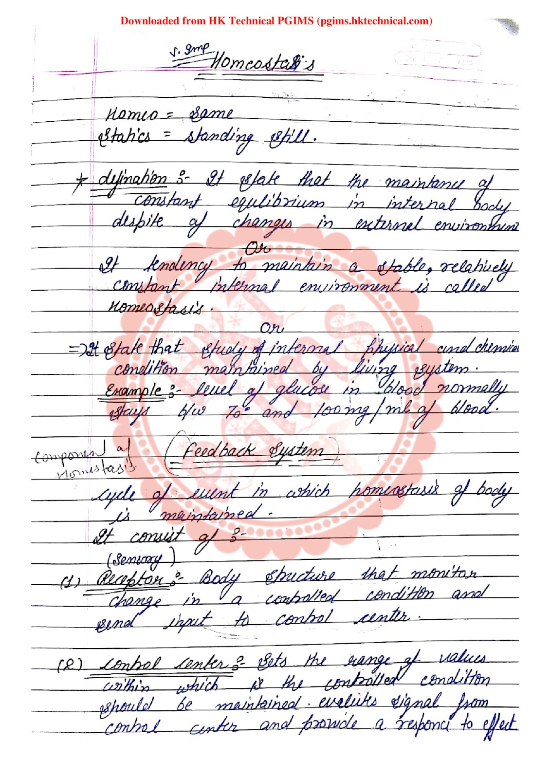 Homeostasis Handwritten Download Notes PDF BPharmacy 1st Semester 2023