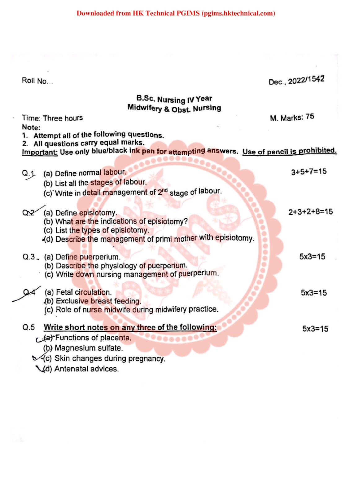 Midwifery and obstetrical Nursing Download Question Paper PDF BSc Nursing 4th Year 2022