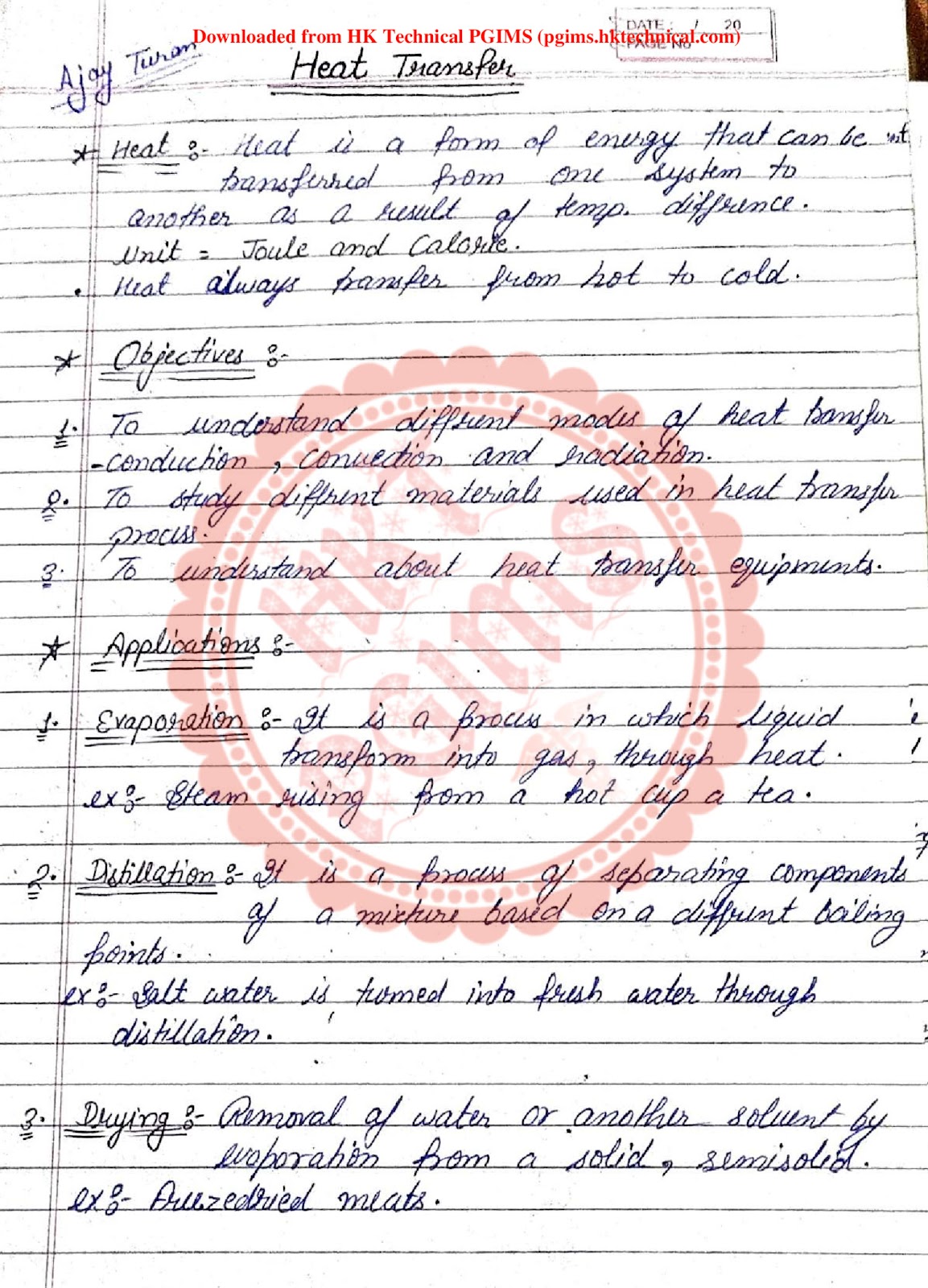 engineering thermodynamics handwritten notes pdf