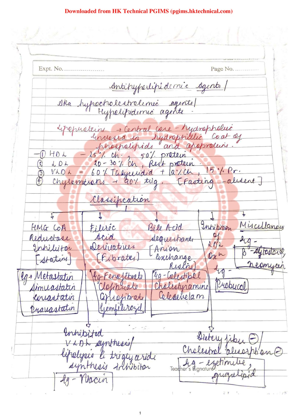 Antihyperlipidemic agents Download Notes PDF BPharmacy 5th Semester 2021