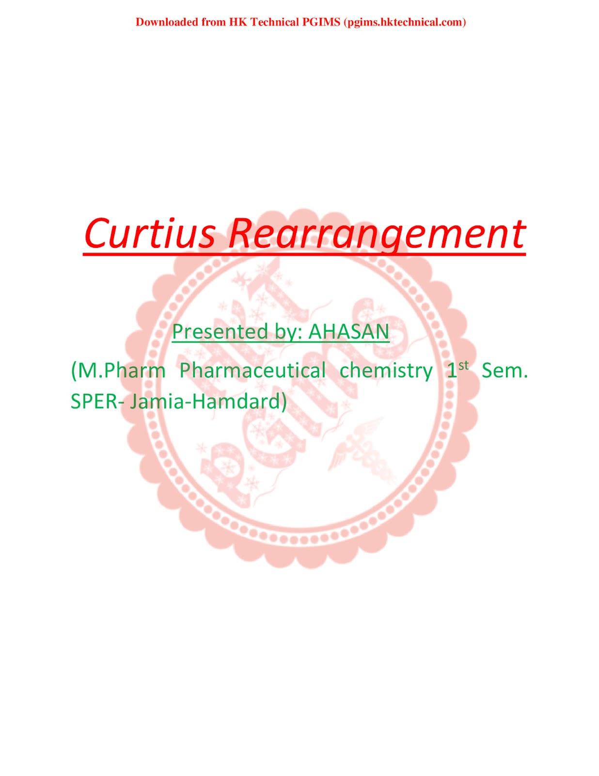 Curtius rearrangement Download Notes PDF MPharmacy 1st Semester 2022