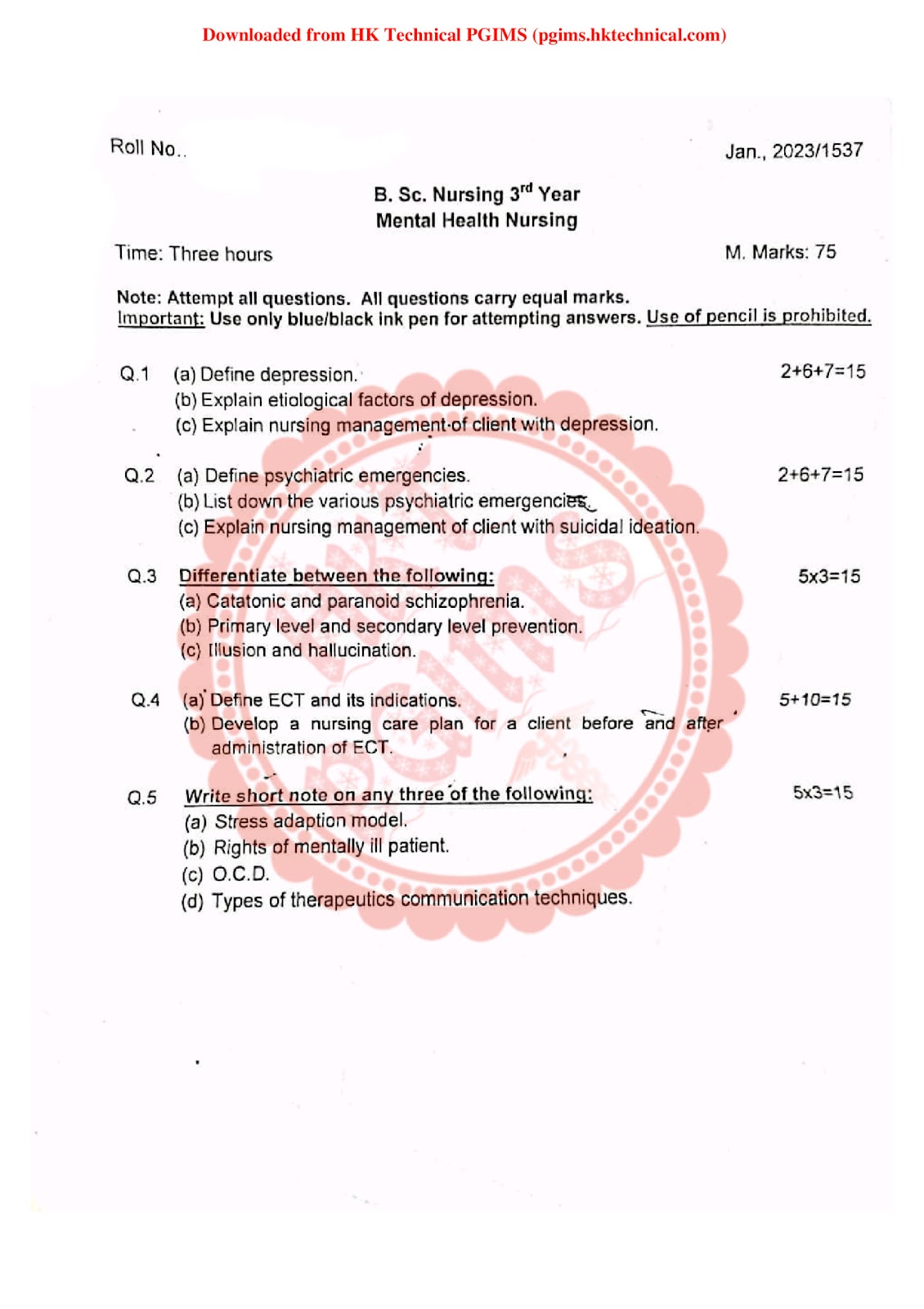 | BSc Nursing BSc Nursing 3rd Year Previous Year's Question Papers Mental Health Nursing | |