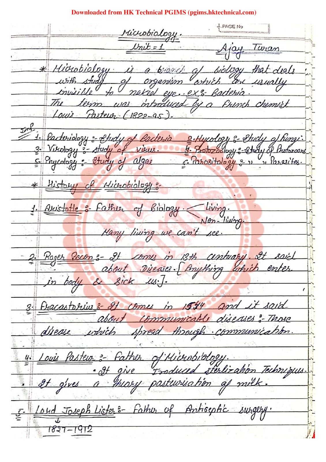 Microbiology unit 1 part 1 Download Notes PDF BPharmacy 3rd Semester 2022