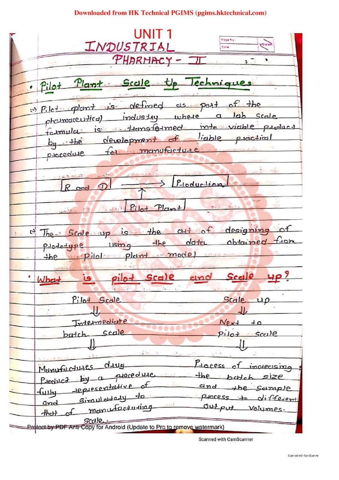 Pilot plant scale up techniques Industrial Handwritten IP-2 Unit-1 |