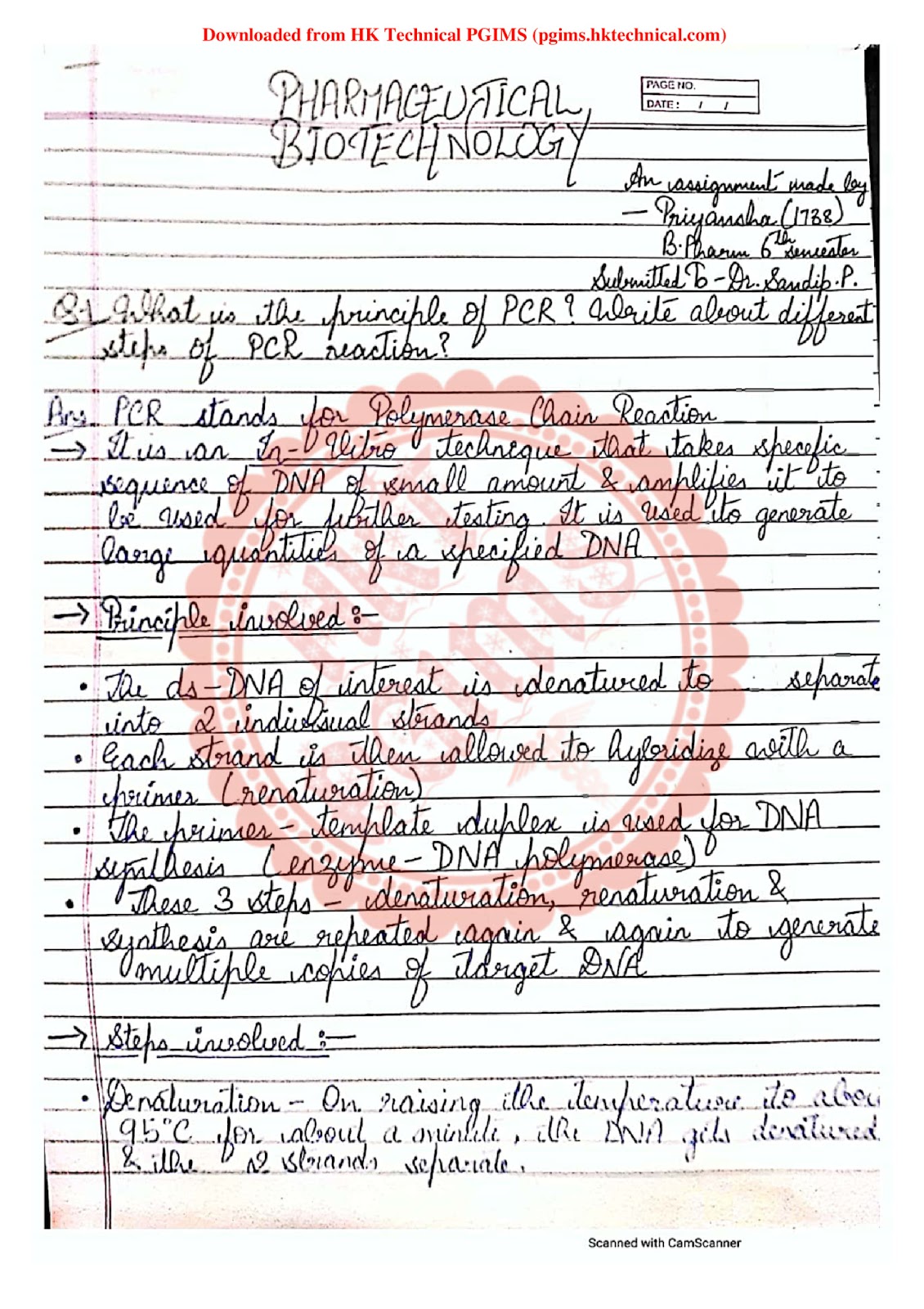 Polymerase Chain Reaction Biotechnology Handwritten Notes |