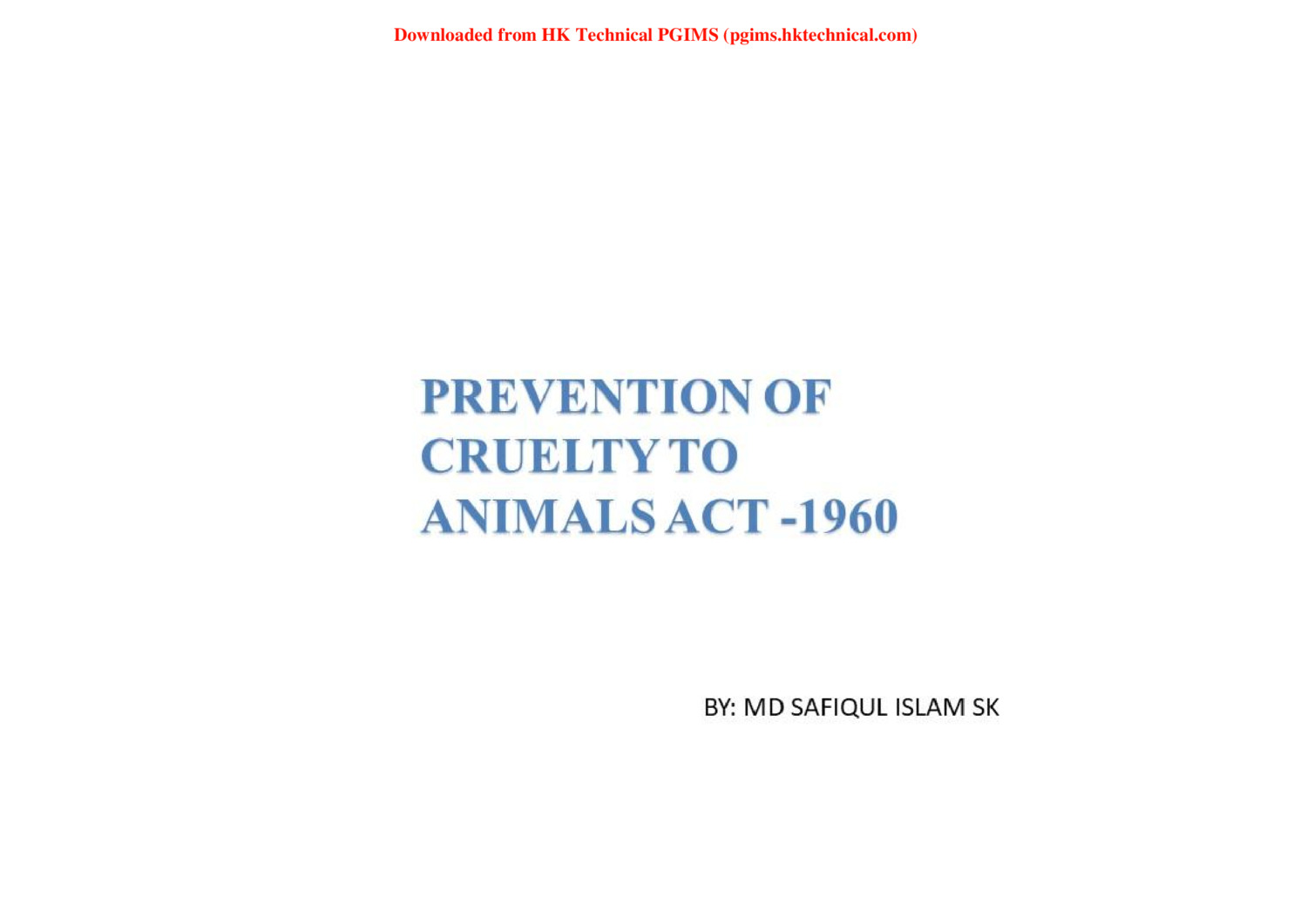 PREVENTION OF CREULTY TO ANIMALS ACT ANIMAL ACT 1960 |