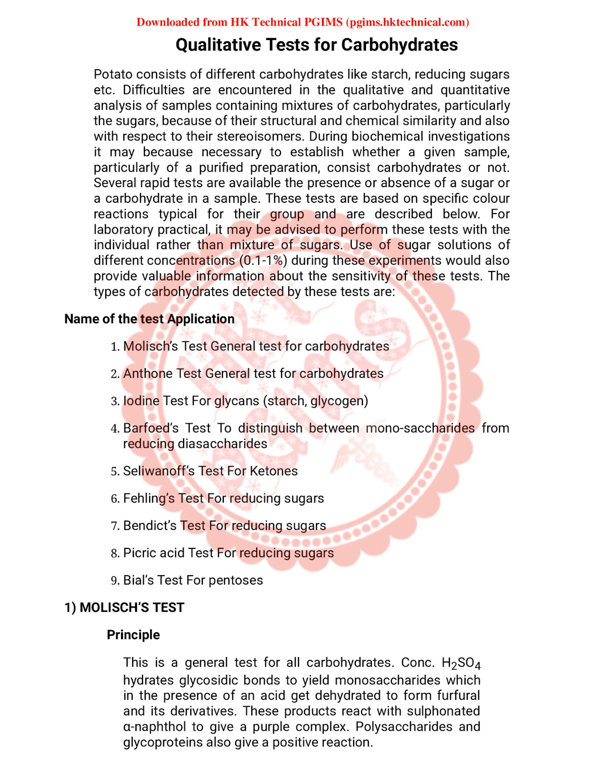 QUALITATIVE TESTS FOR CARBOHYDRATES (S.P.B.C COP) Download Notes PDF BPharmacy 2nd Semester 2022