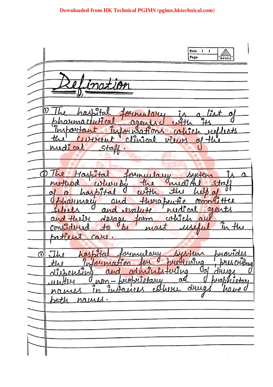 | BPharmacy BPharm 7th Semester Important Exam Notes Handwritten Notes | |