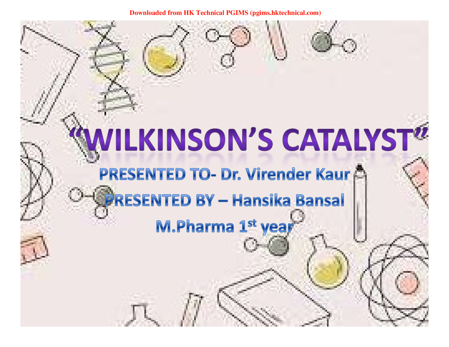 WILKINSON Catalysts Preparation, Application Download Notes PDF MPharmacy 1st Semester 2022